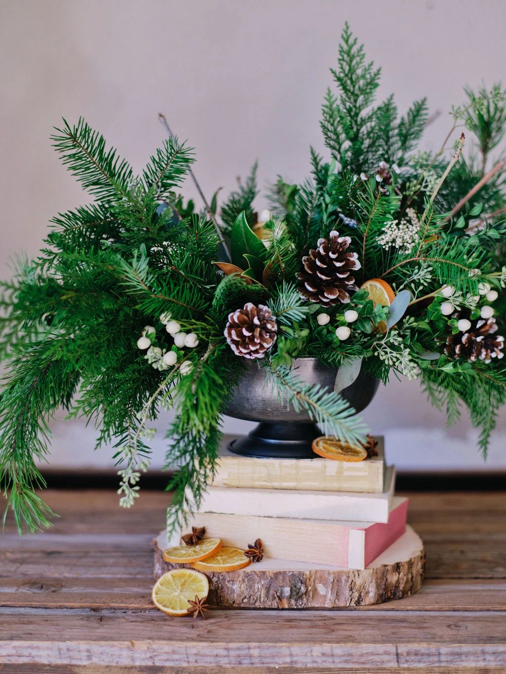 We will be using a compote style vessel and filling it with winter greenery, berries, and textures that will last the whole season through.